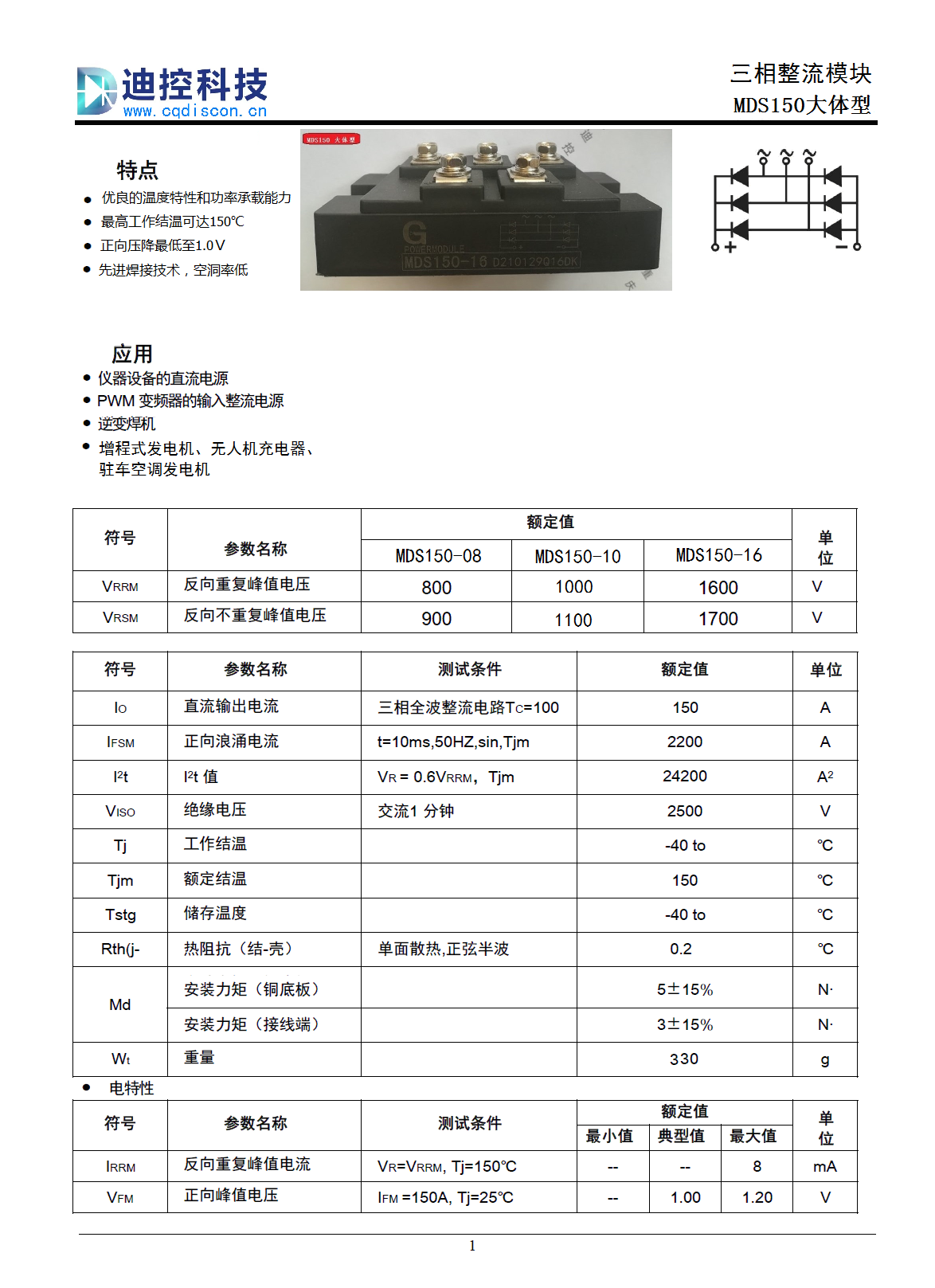 三相整流桥150A大体型