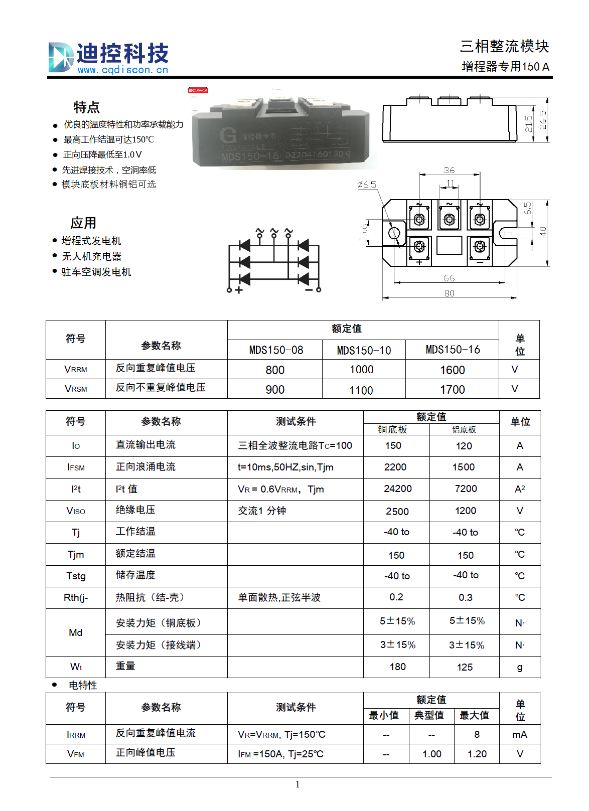 三相整流桥MDS150A